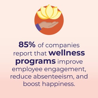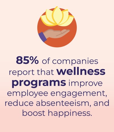 85% of companies say wellness programs boost engagement, reduce sick days, and improve happiness and work quality.